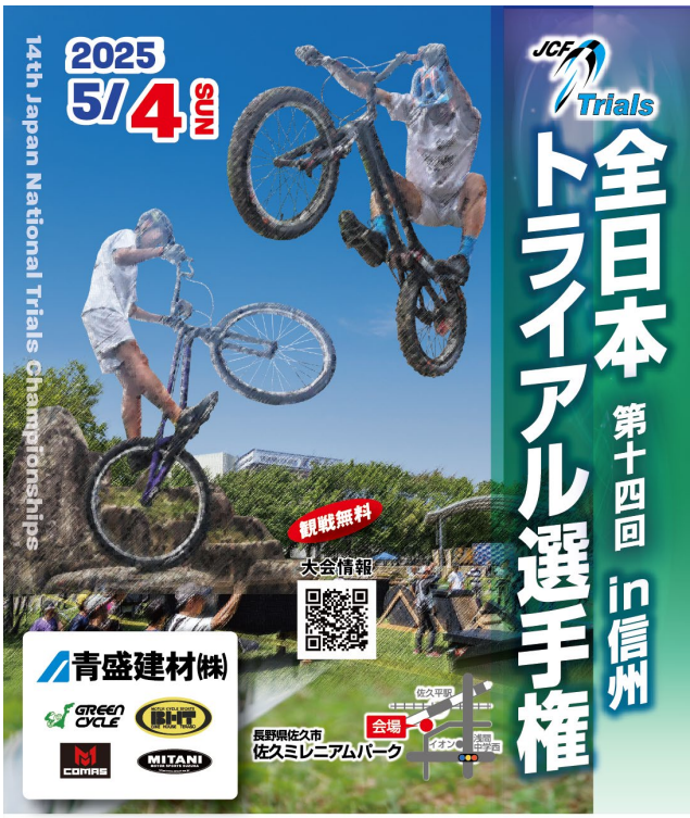 本日2025年5月4日㈰に佐久市ミレニアムパークで自転車トライアル競技の2024年日本王者を決める「第14全日本トライアル選手権in信州佐久」が開催され、男子エリート20の部で地元佐久出身の土屋凌我(無所属/長野県登録)が優勝。土屋選手は2019年に初の全日本王者戴冠以降、コロナ禍で大会が中止となった期間も含めて大会六連覇を達成した。