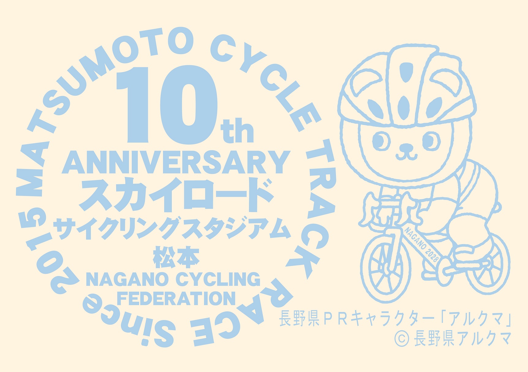 例年ご好評を頂いてる参加賞ですが、本年は競技場開場10周年記念大会と云うことで、初めて2028年に長野県で開催予定の「第82回国民スポーツ大会」(旧国体)の周知を兼ねて国スポバージョンのアルクマ(長野県PRキャラクター)を採用した大会オリジナルデザインとなっております。参加選手の皆様は、ライセンスコントロールの際に参加賞としてお受け取り下さい。